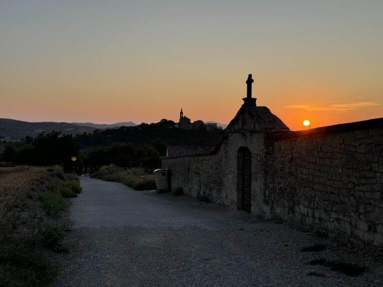 Dzisiejszy dzień rozpoczęliśmy pobudką ok 6:30. To zdjęcie zostało zrobione o 7:23 czyli dokładnie w momencie w którym miał miejsce wschód słońca w Torres del Rio. Jedliśmy wtedy szybkie śniadanie w kawiarni w hostelu w którym nocowaliśmy. 10 minut później byliśmy już na szlaku i słońce było troszeczkę wyżej. Temperatura otoczenia była jeszcze bardzo przyjemna…