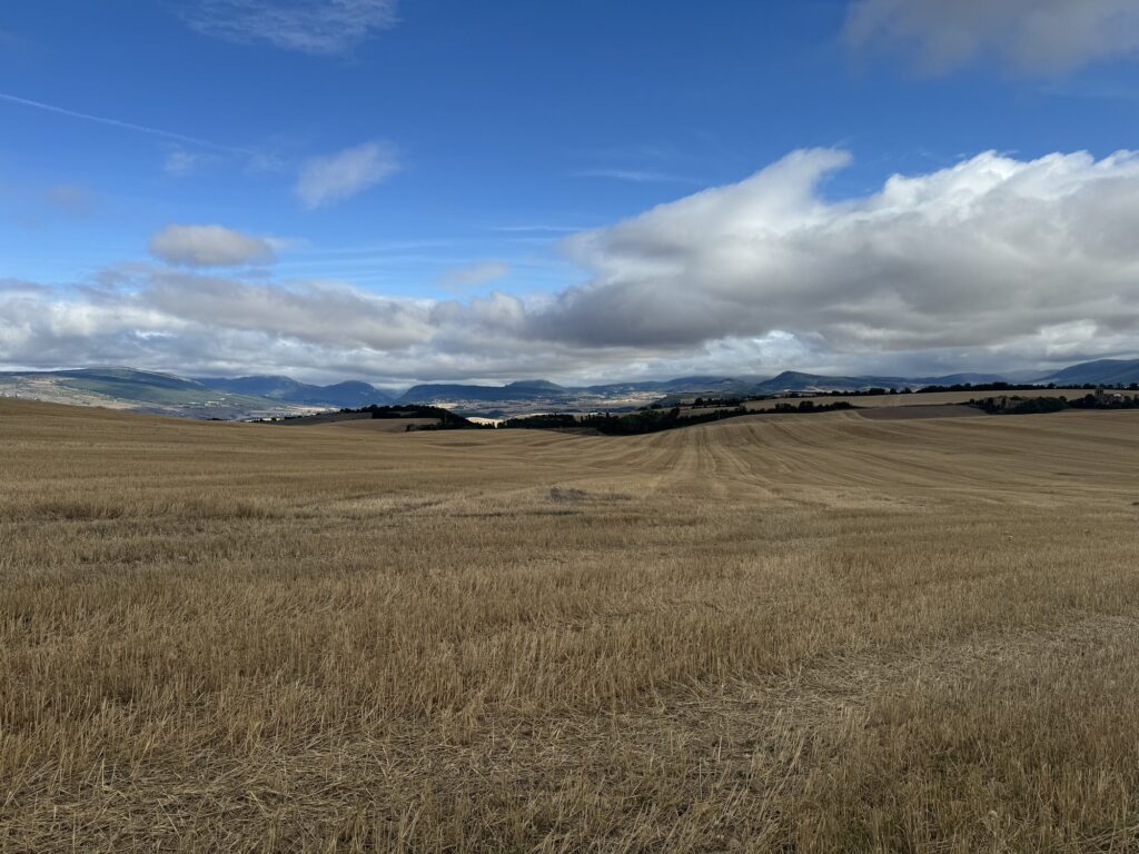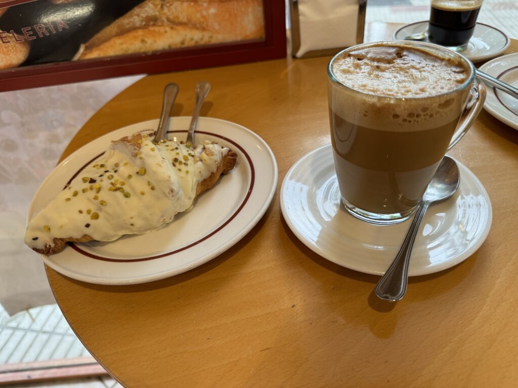 Wyruszyliśmy około 7:00. Dzisiejszy cel to Puente la Reina oddalona o 24 km od Pampeluny, którą pozostawiamy za nami. Po 2 km spaceru wstąpiliśmy na kawkę i śniadanko. Tym razem z wyboru pistacjowy croissant😁, ale uwielbiam wszystko co pistacjowe więc nie potrafiłam sobie odmówić.