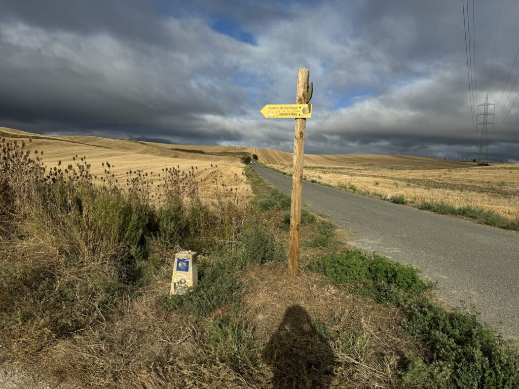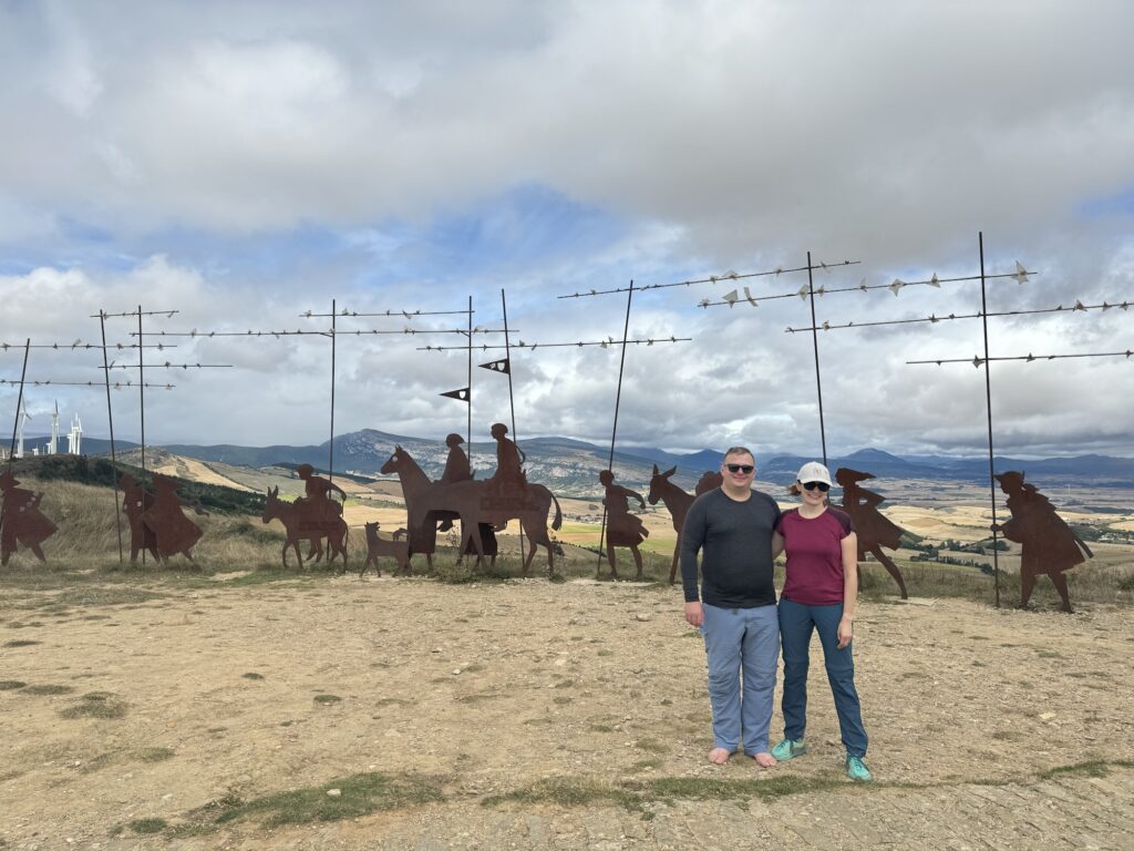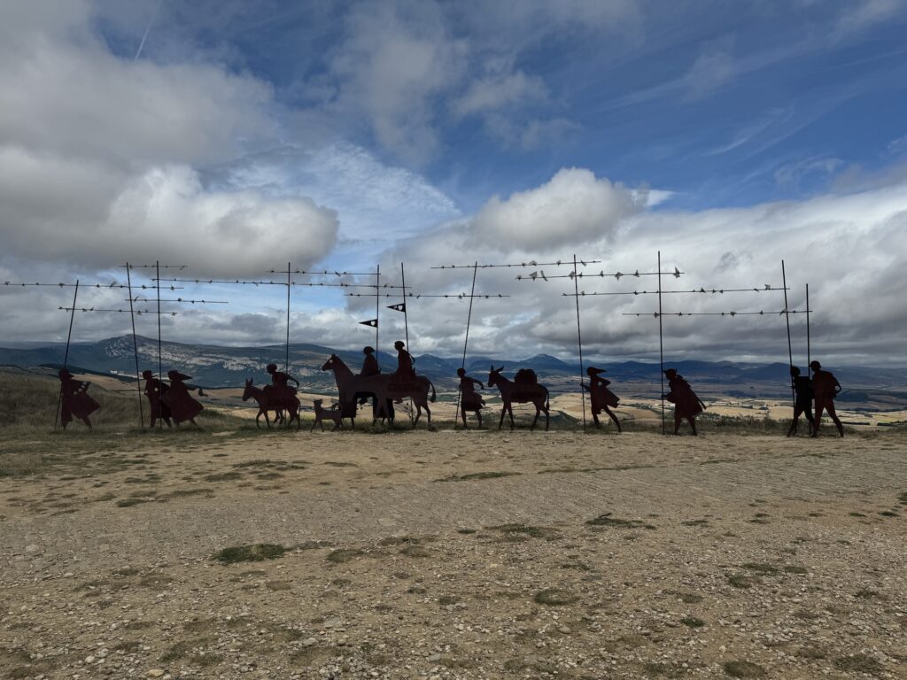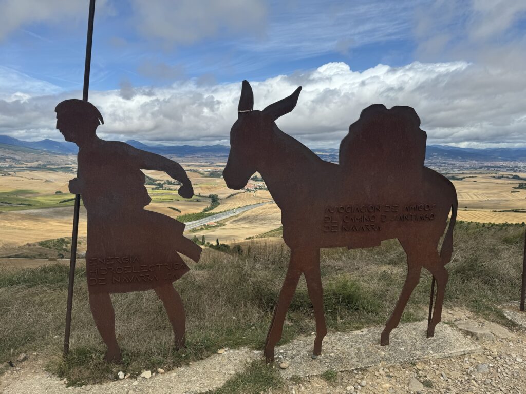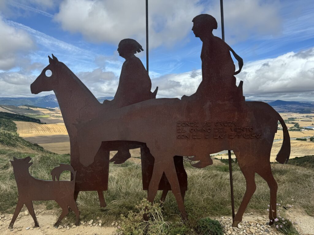 I tak sobie wędrujemy głównie przez pola. Trochę w górę, potem znowu w dół i znowu w górę i tak doszliśmy do Monumento el Peregrino czyli do Pomnika Pielgrzyma. Jest to jedno z bardziej znanych miejsc na szlaku Camino.