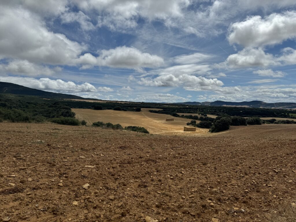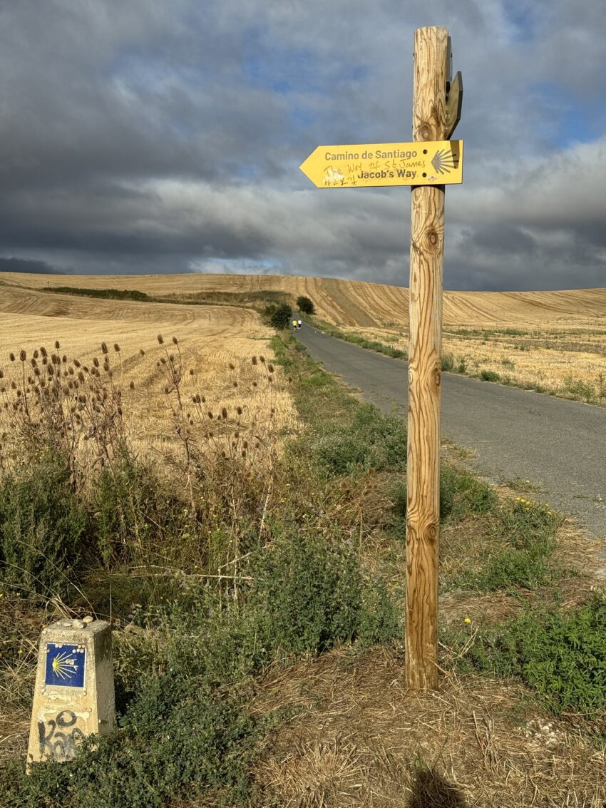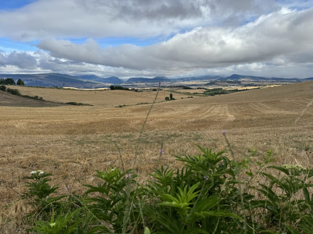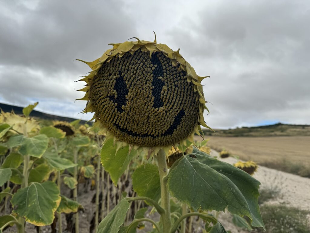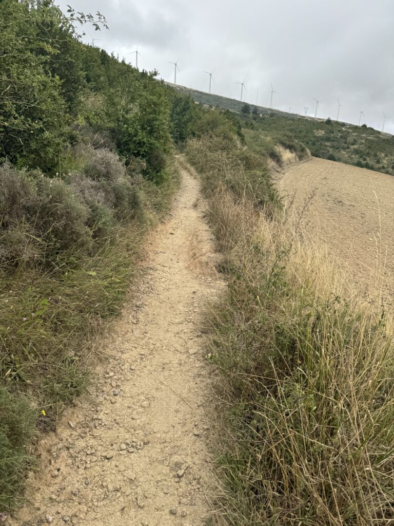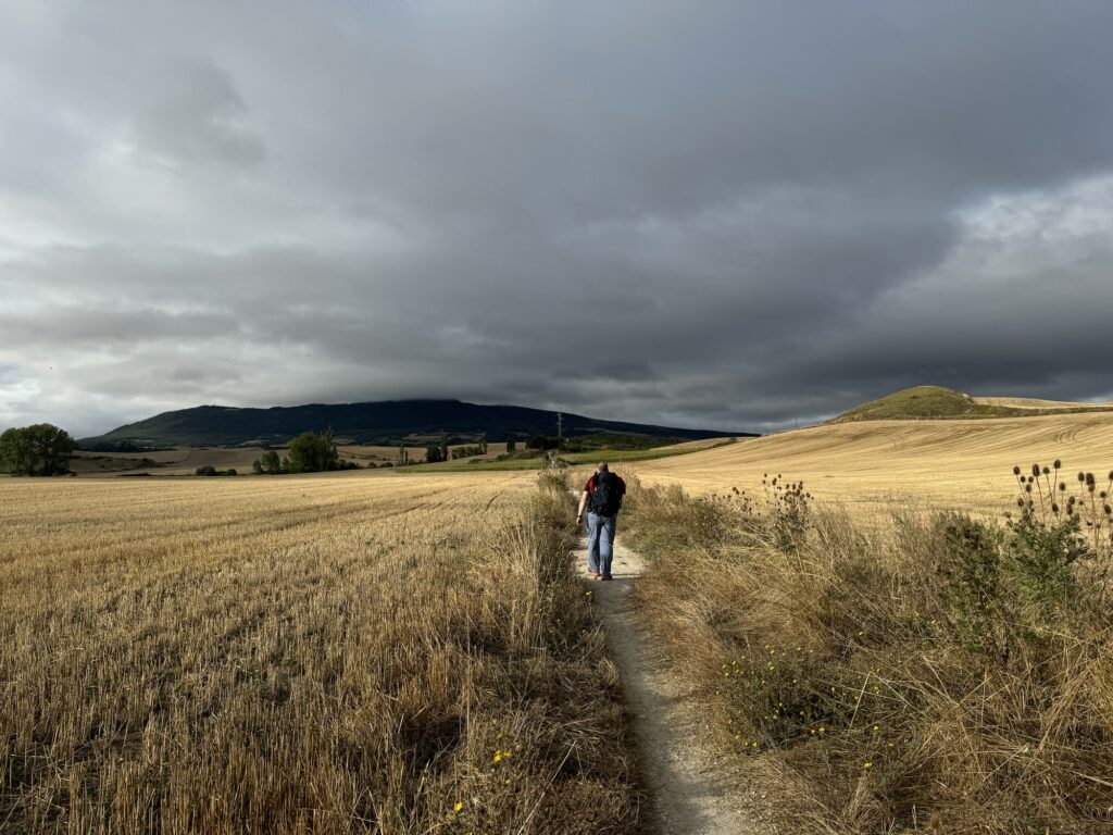 I tak sobie wędrujemy głównie przez pola. Trochę w górę, potem znowu w dół i znowu w górę i tak doszliśmy do Monumento el Peregrino czyli do Pomnika Pielgrzyma. Jest to jedno z bardziej znanych miejsc na szlaku Camino.