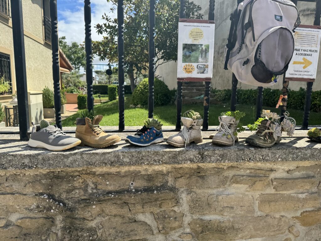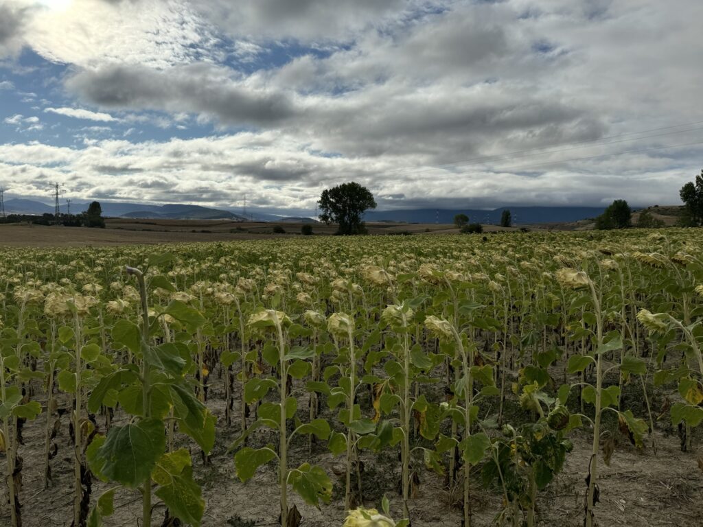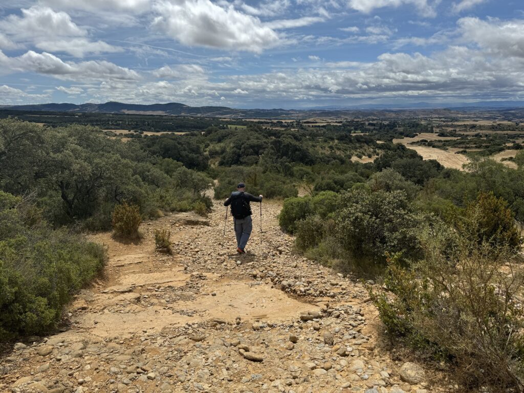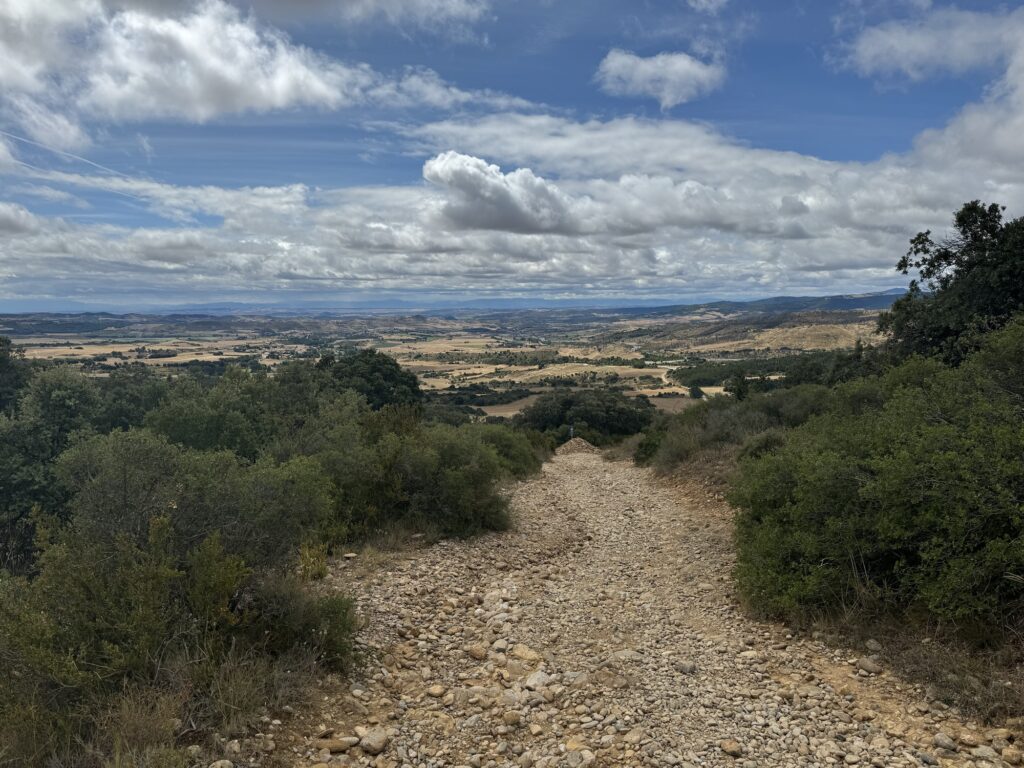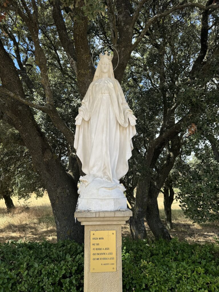 I tak sobie wędrujemy głównie przez pola. Trochę w górę, potem znowu w dół i znowu w górę i tak doszliśmy do Monumento el Peregrino czyli do Pomnika Pielgrzyma. Jest to jedno z bardziej znanych miejsc na szlaku Camino.