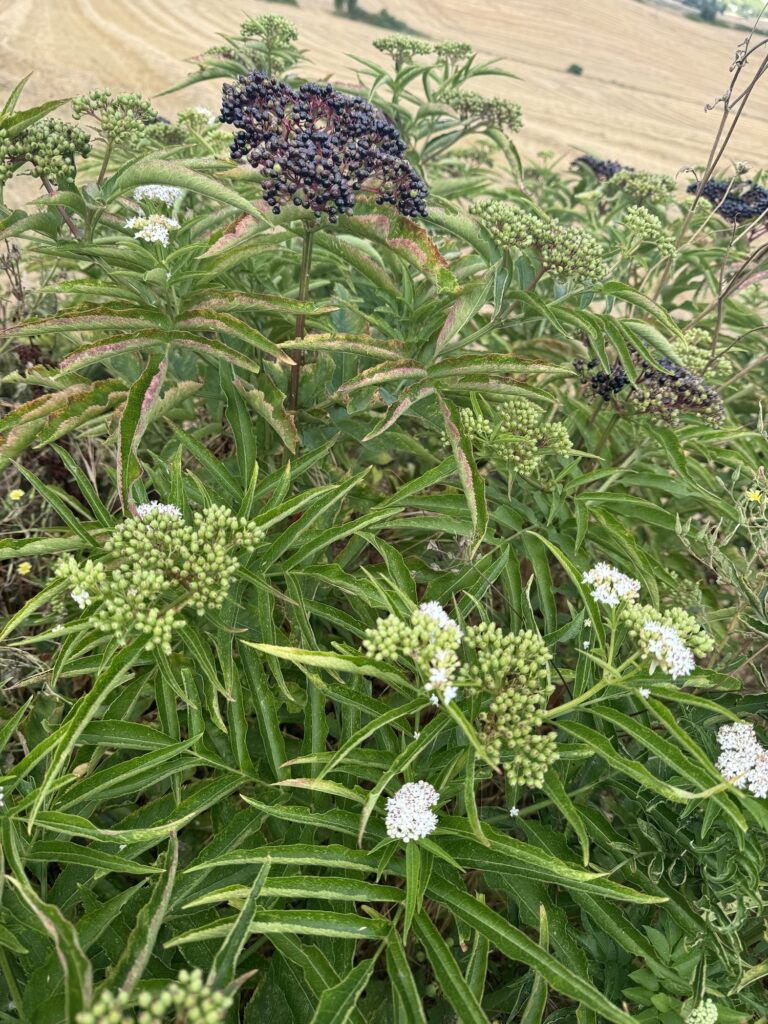 Było bardzo gorąco gdy szliśmy pomiędzy polami i łąkami. Pojawiło się dzisiaj sporo nowości w roślinności:
