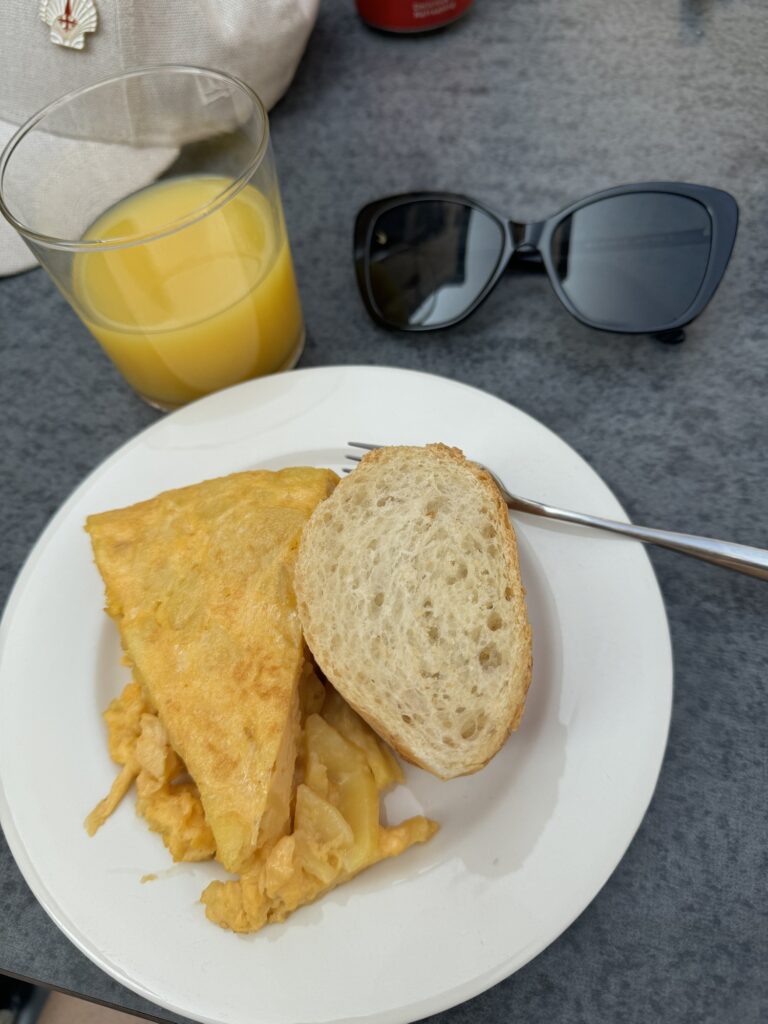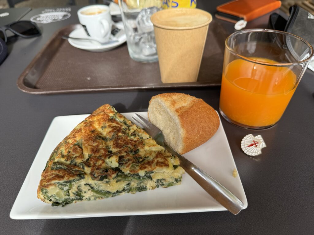 Dzisiejszy poranek przywitał nas bezchmurnym niebem i wszystko wskazuje na to, że taka aura pozostanie z nami do wieczora. Wyszliśmy z albergue, w którym spaliśmy, chwilę po godzinie 8:00 i udaliśmy się na szybkie śniadanko w pobliskiej kawiarni.