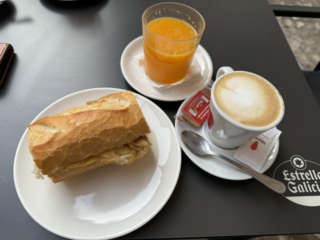Dzień rozpoczęliśmy od śniadania w barze niedaleko naszego hostelu. Dziś udało się kupić kanapkę z… jajecznicą z szynką i serem. Była bardzo dobra. Do tego oczywiście była kawa z mleczkiem i wyciskany sok z pomarańczy.