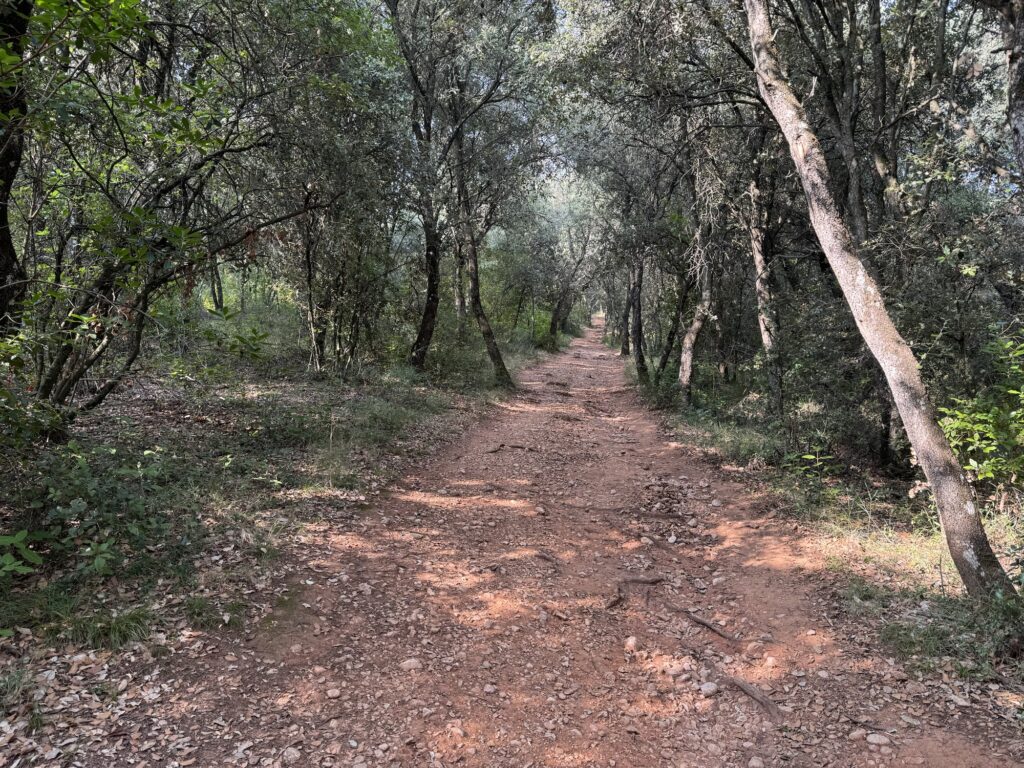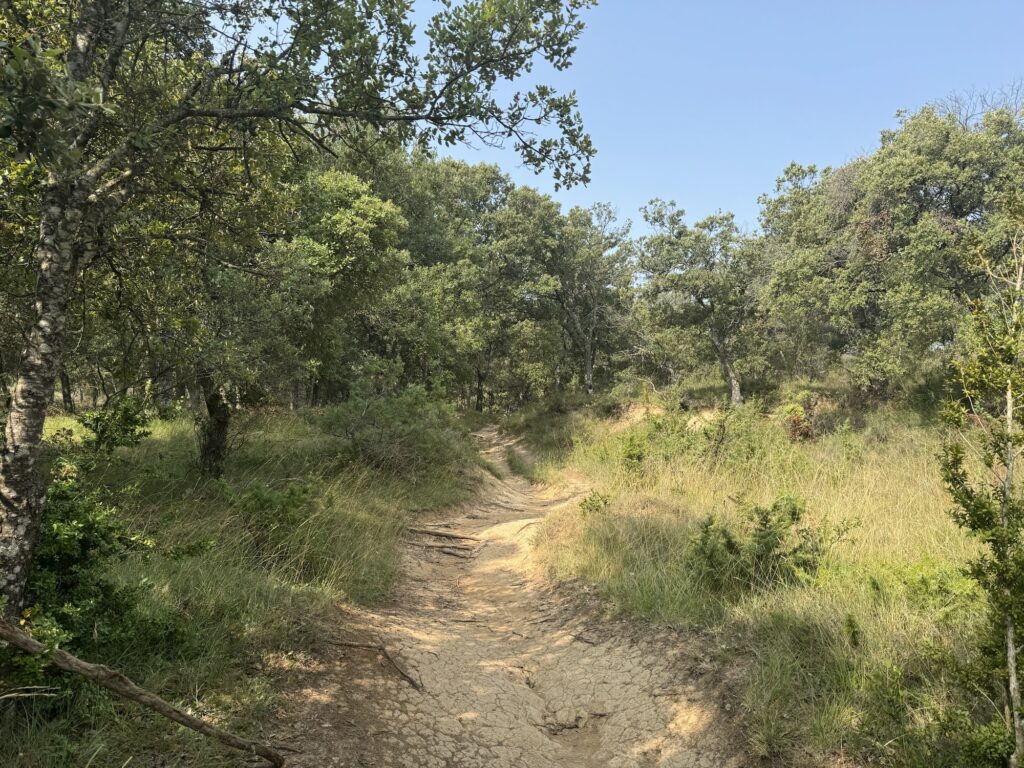 Gdy zbliżaliśmy się do lasu, wychodziła z niego spora grupka mężczyzn wracających do miasteczka z nordic walkingu. Za nimi unosił się intensywny zapach olejku lawendowego. Obawiałam się, że to może zwiastować utrudnienia..,