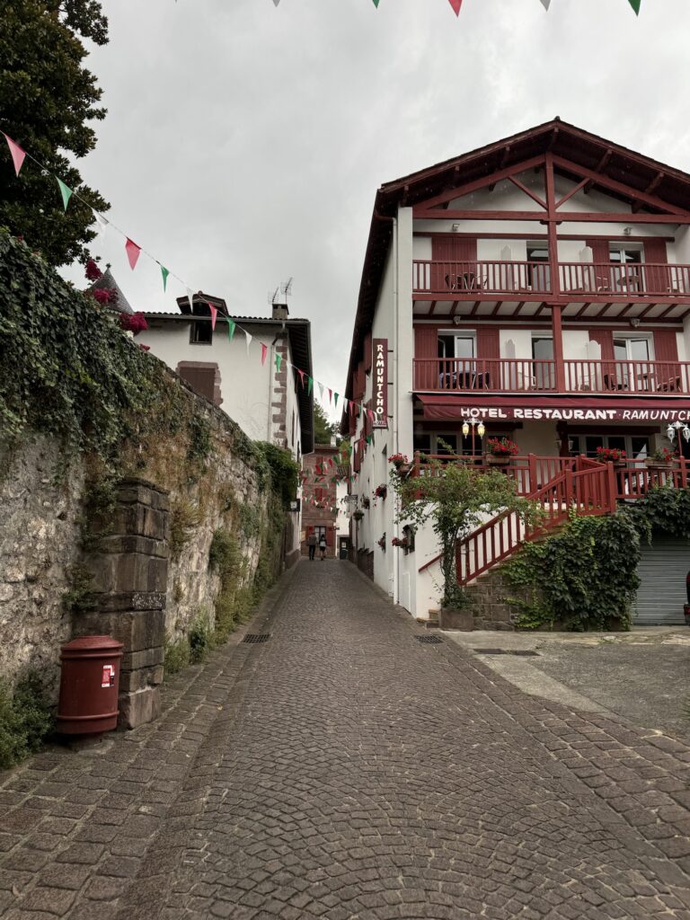 Z Biarritz do Saint Jean Pied de Port dotarliśmy pociągiem. Pogoda coraz bardziej się pogarszała. Najpierw padał kapuśniaczek a później zaczął padać rzęsisty deszcz i pojawiła się burza.
